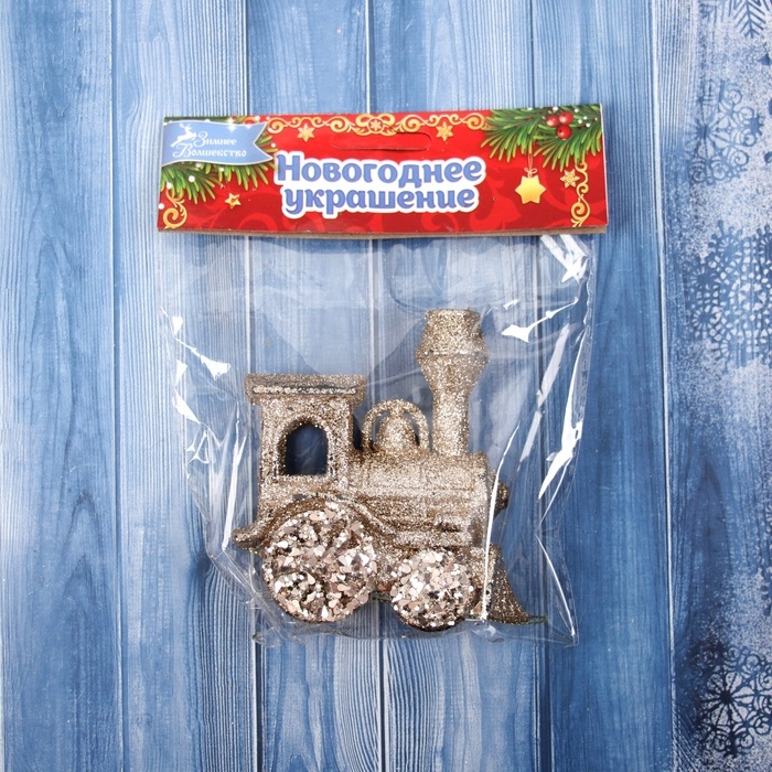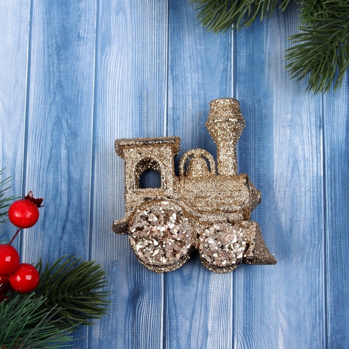 Украшение ёлочное "Паровозик блеск" 9х8 см, золото