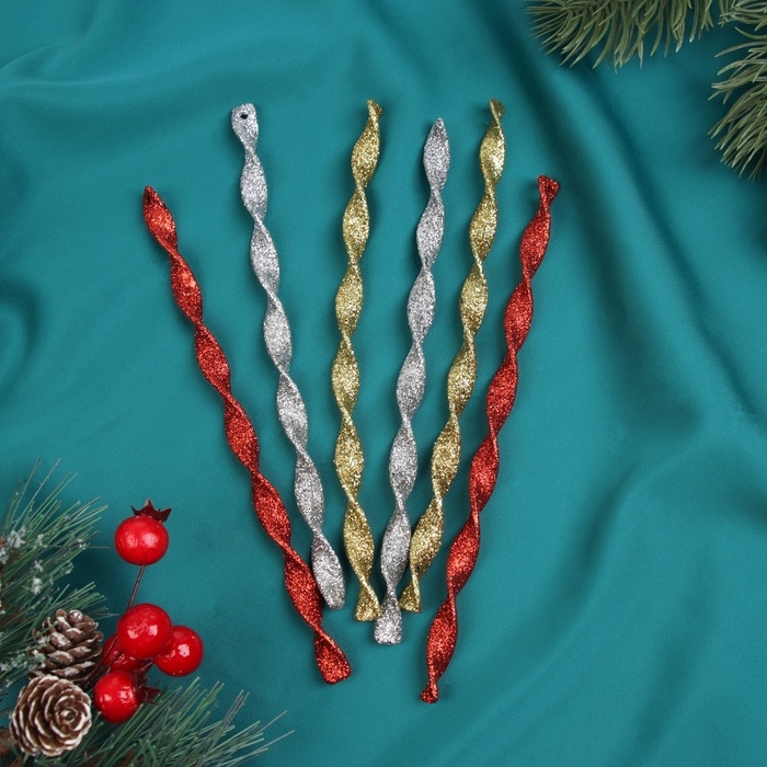 Украшение ёлочное "Сосулька витая грация" (набор 6 шт) 16,5х1 см, микс