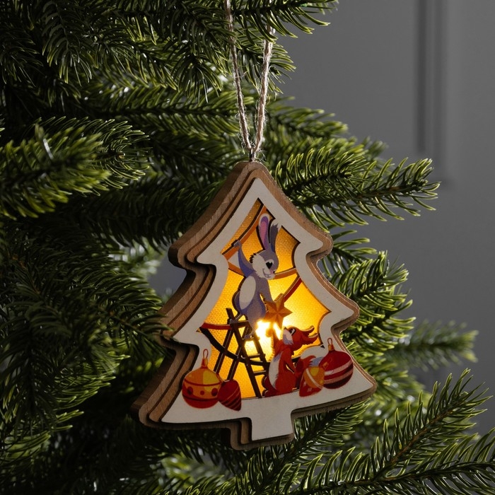 Подвеска световая "Зайка и белка", 11х12 см, LR41x3 (в компл.), свечение тёплое белое