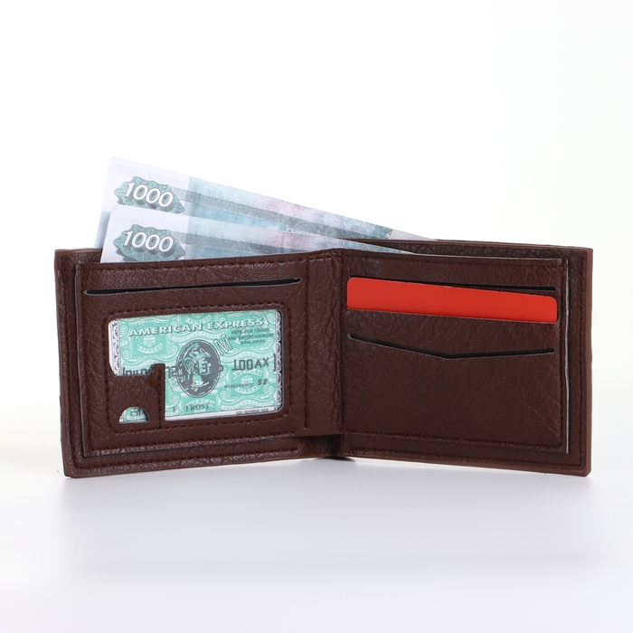 Портмоне мужское без застёжки, цвет коричневый
