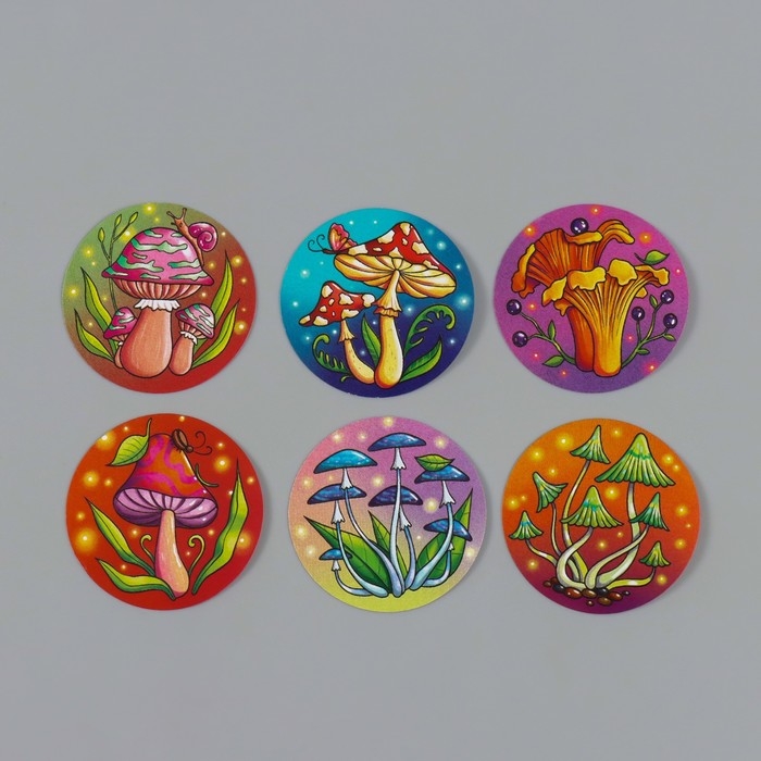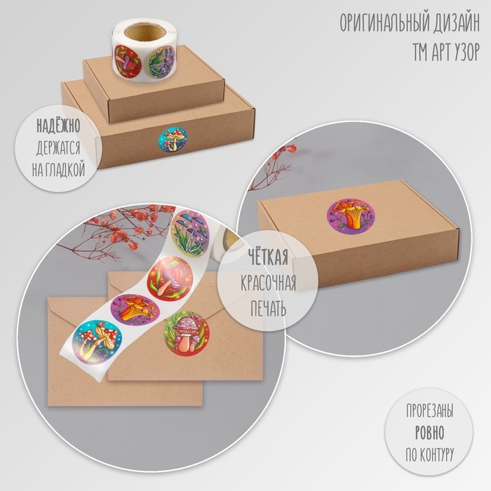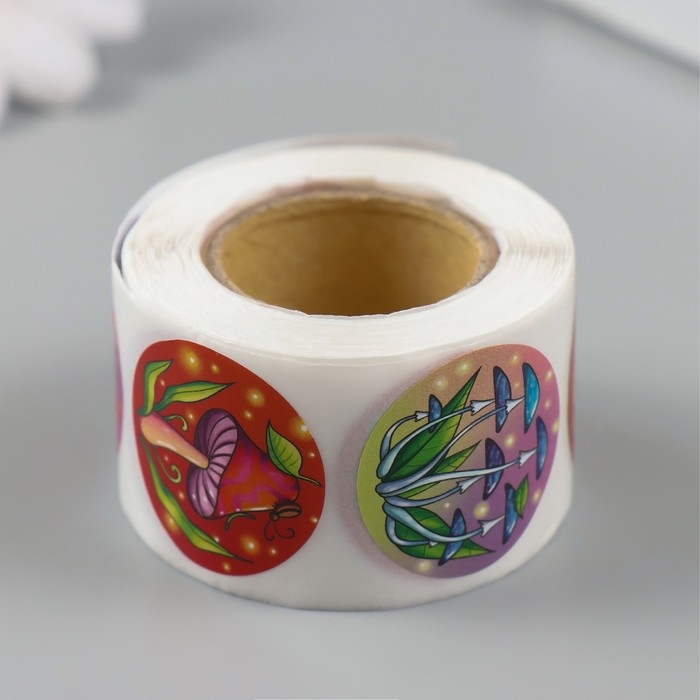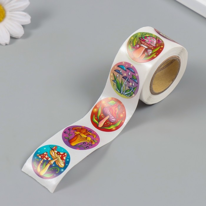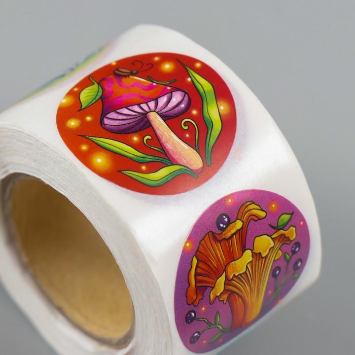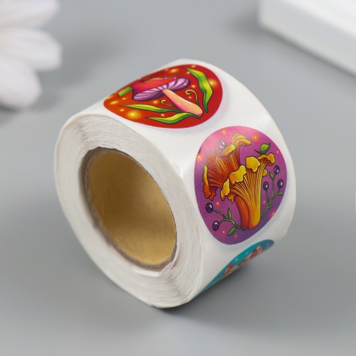 Наклейка бумага "Грибы" d=2,5 см 252 шт в рулоне