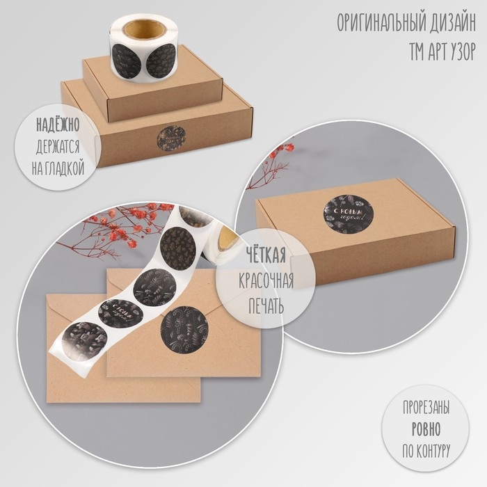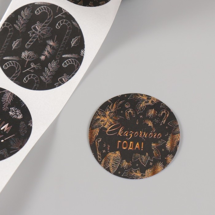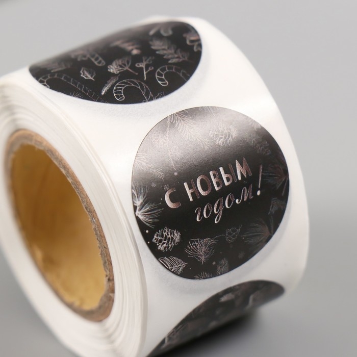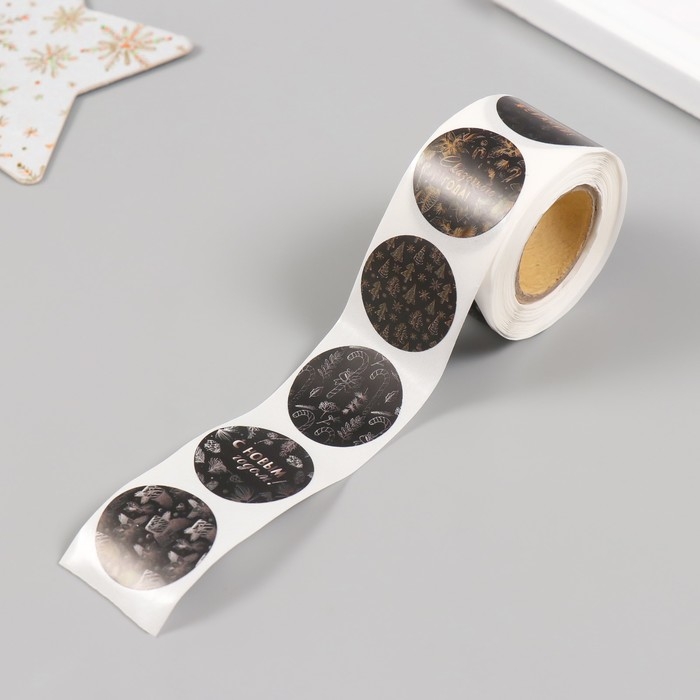 Наклейка бумага "Ёлочки и шишки" d=2,5 см 252 шт в рулоне