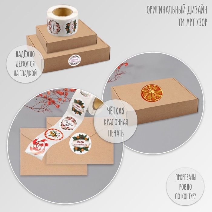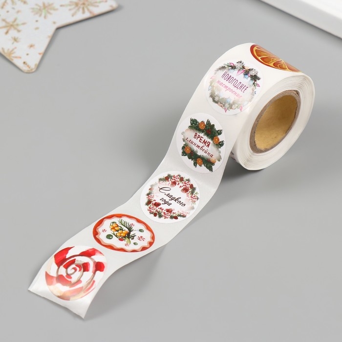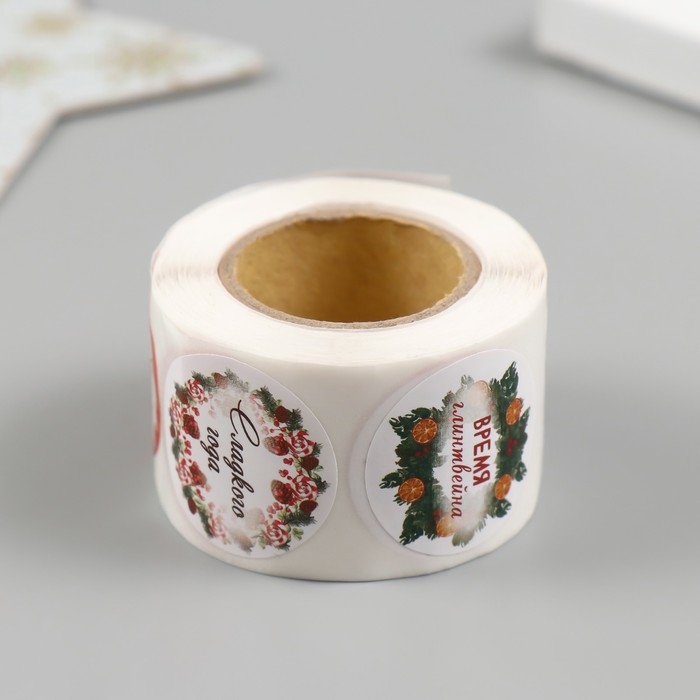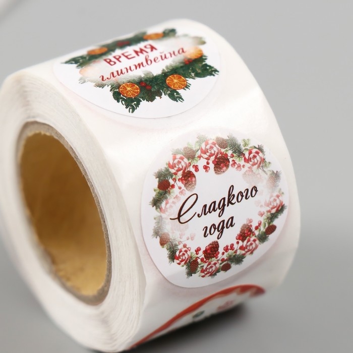 Наклейка бумага "Время глинтвейна" d=2,5 см 252 шт в рулоне