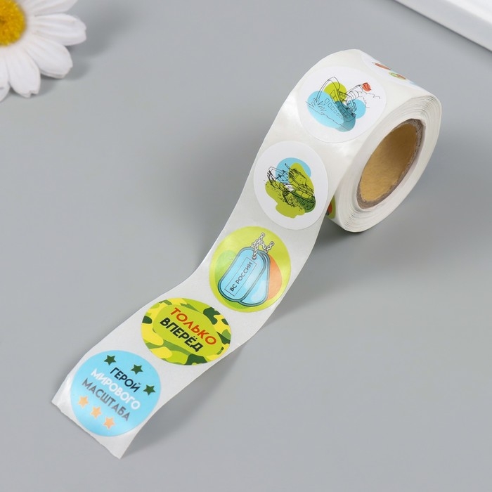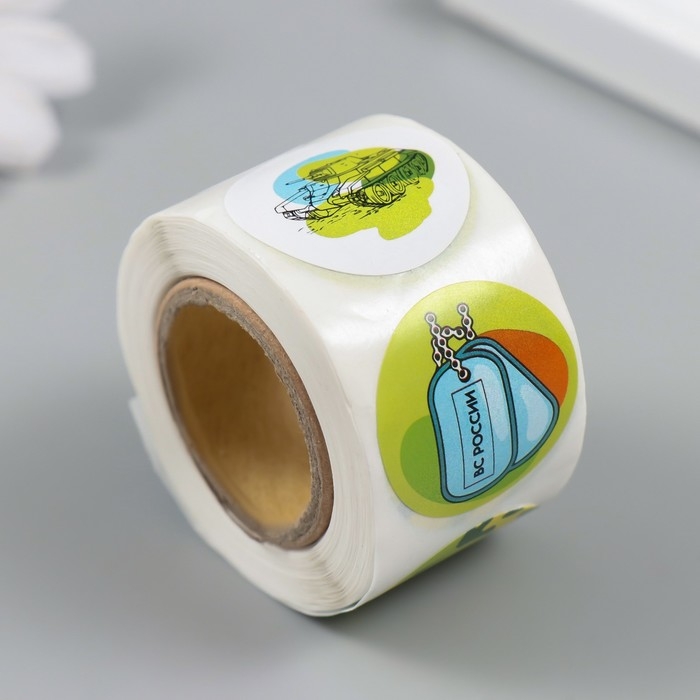 Наклейка бумага "Танк" d=2,5 см 252 шт в рулоне