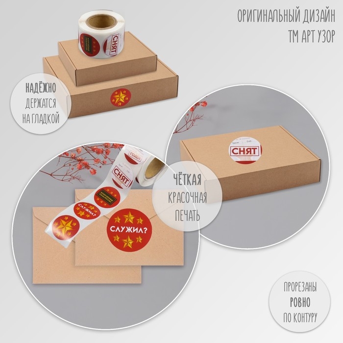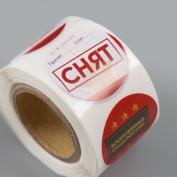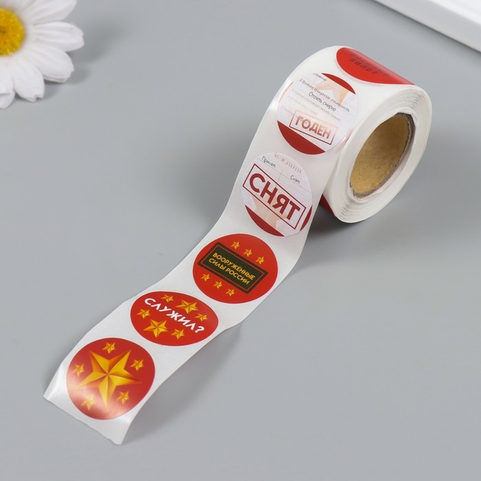 Наклейка бумага "Военный билет" d=2,5 см 252 шт в рулоне
