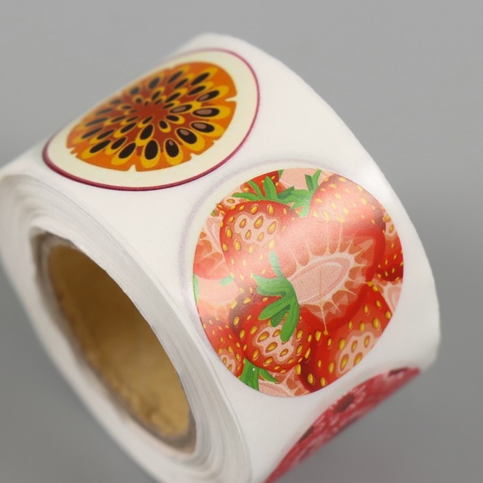 Наклейка бумага "Фрукты и ягоды" d=2,5 см 252 шт в рулоне