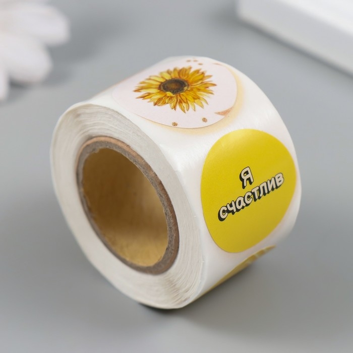 Наклейка бумага "Жёлтые" d=2,5 см 252 шт в рулоне