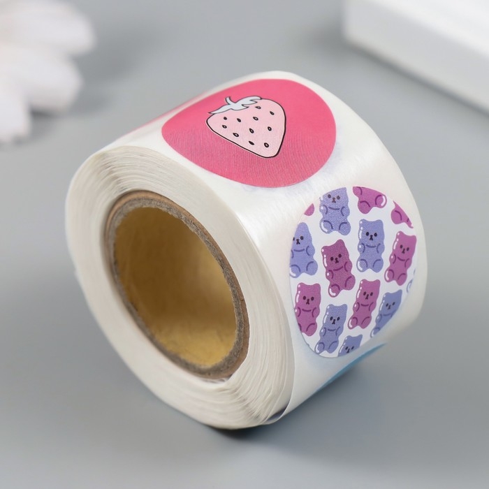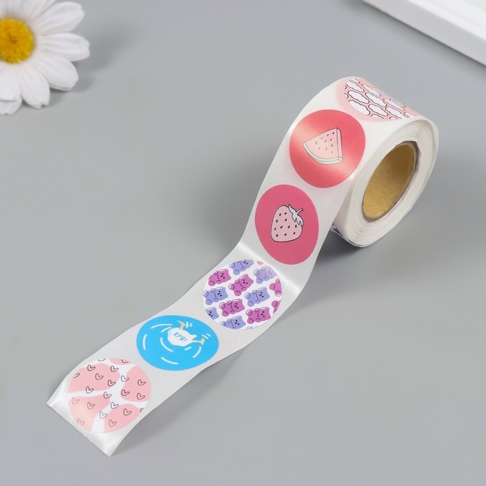 Наклейка бумага "Мимишности" d=2,5 см 252 шт в рулоне
