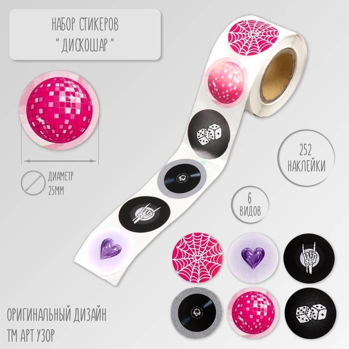 Наклейка бумага "Дискошар" d=2,5 см 252 шт в рулоне