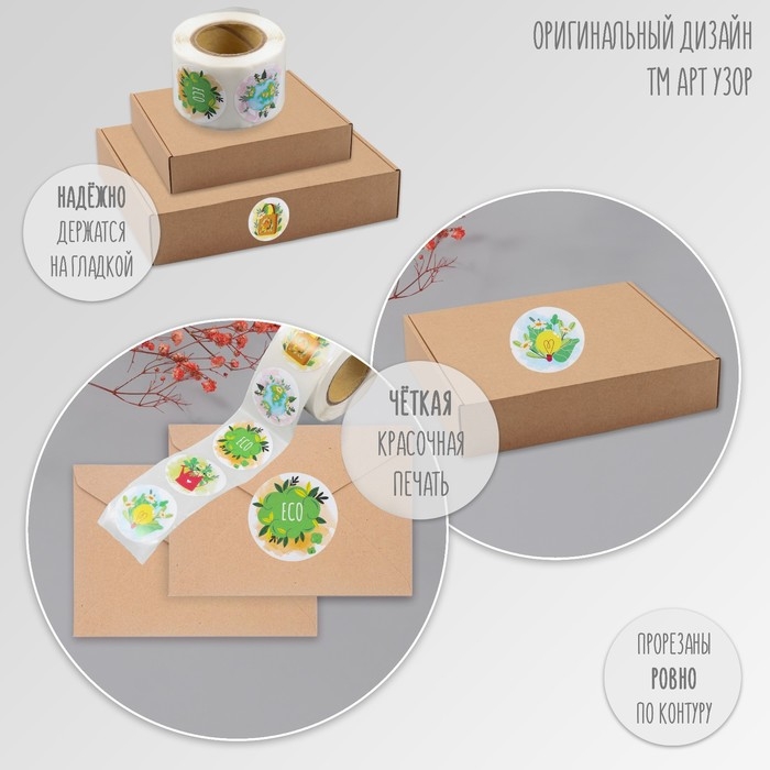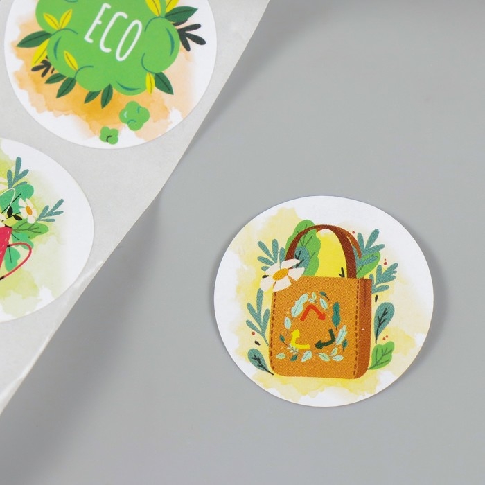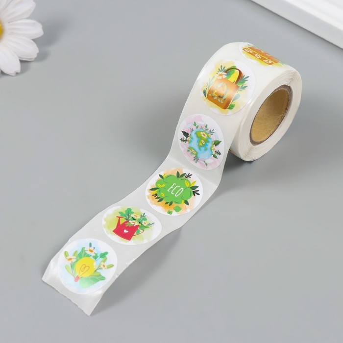 Наклейка бумага "Экология. Мультяшная" d=2,5 см 252 шт в рулоне
