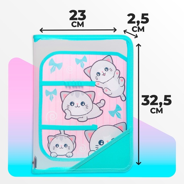 Папка для труда А4, 325 х 230 х 25 мм, молния вокруг, откидная планка, пластиковая, ПТР-1, Calligrata "Веселые персы"