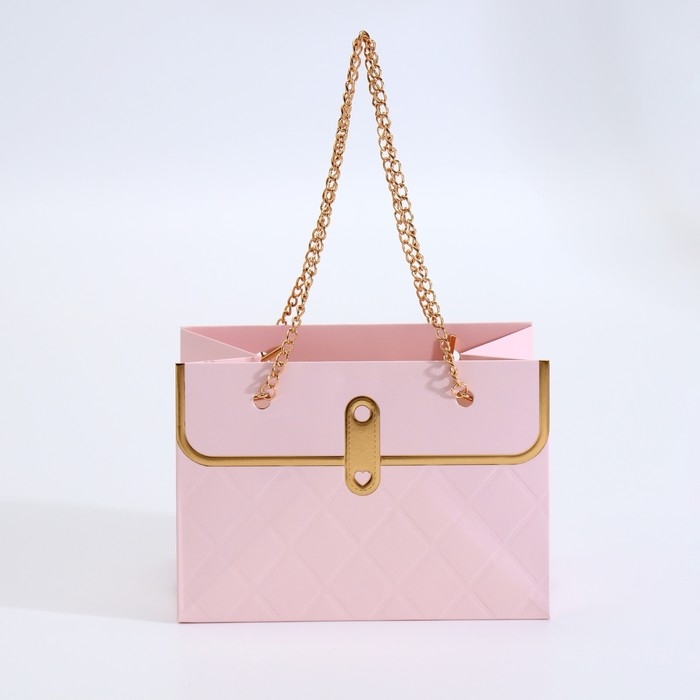 Пакет для цветов, ручка цепь, "Розовый", с золотым тиснением, 15 х 10,5 х 10 см