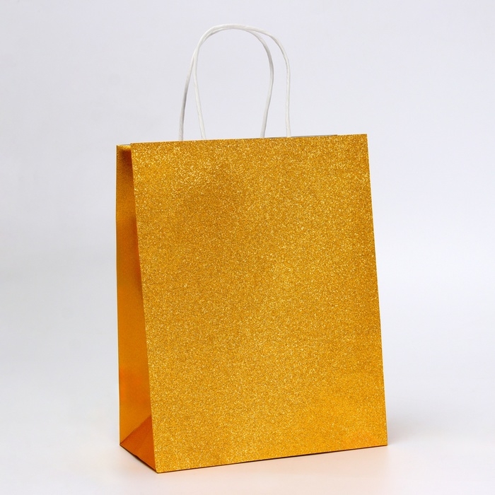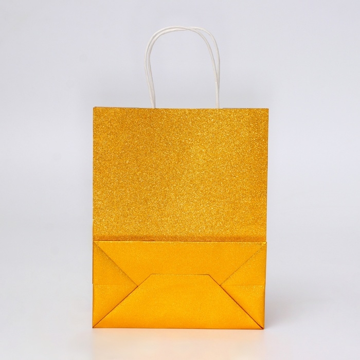 Пакет подарочный бумажный с глиттером золотой, 21 х 11 х 27 см