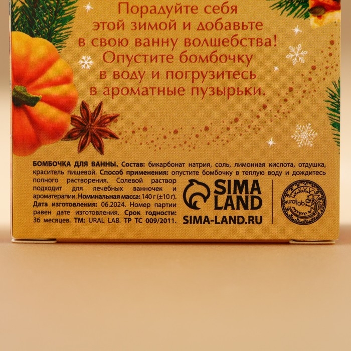 Бомбочка для ванны, 140 гр, аромат тыквенного пирога, Новый Год