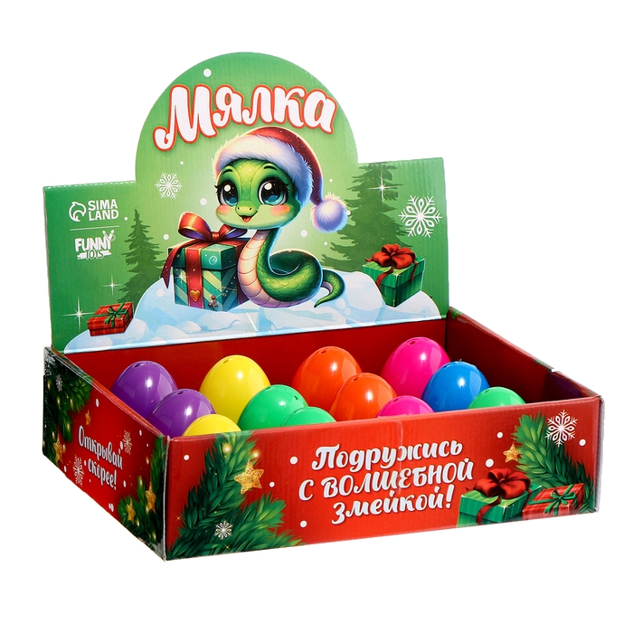Новый год! Антистресс сквиш мялка «Змейка в шапочке», в яйце, в шоубоксе