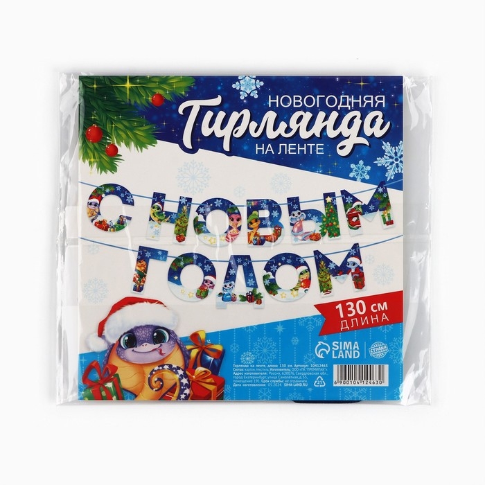 Новый год 2025! Гирлянда на ленте «Новогодняя коллекция: С новым годом», змейка, дл. 130 см