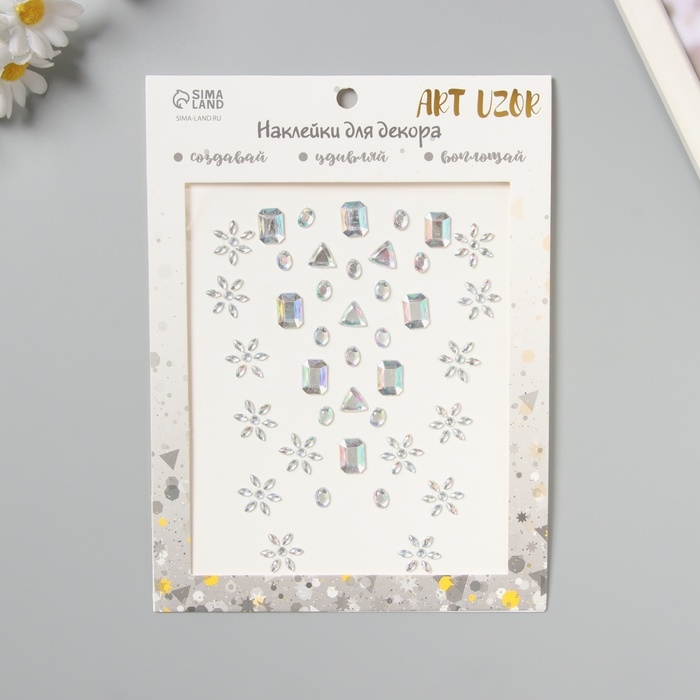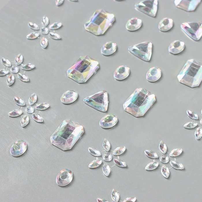 Наклейка пластик стразы на волосы "Геометрия, цветы" серебро 21х15,5 см