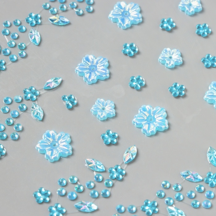 Наклейка пластик стразы на волосы "Нежные голубые цветы" 21х15,5 см