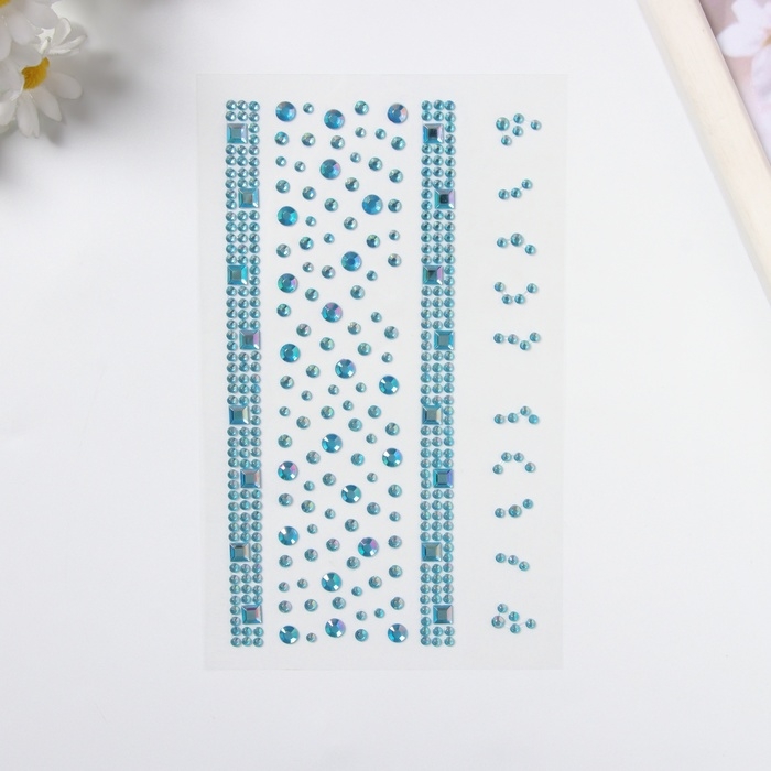Наклейка пластик стразы "Квадратная дорога" синяя 22,5х11,5 см