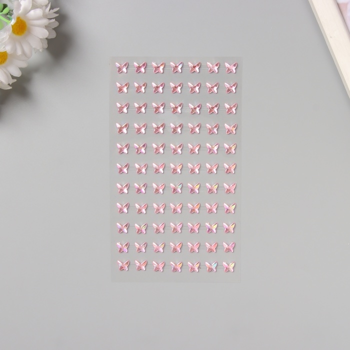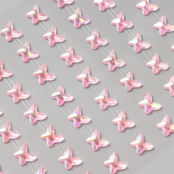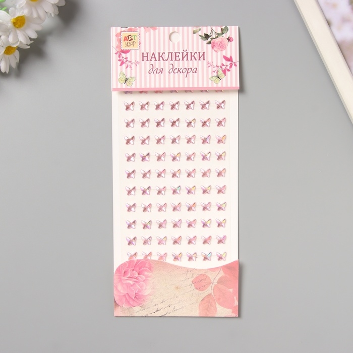 Наклейка пластик стразы "Бабочки" розовая 15х9 см