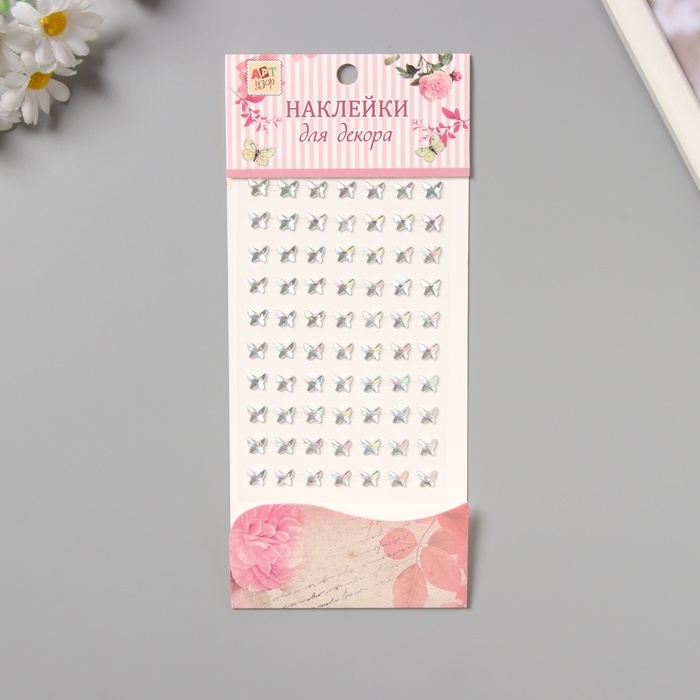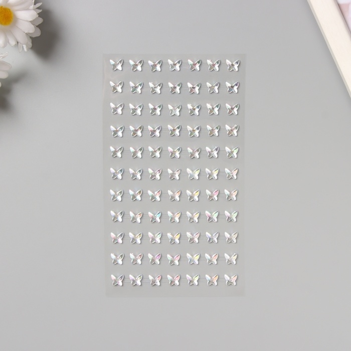 Наклейка пластик стразы "Бабочки" перламутровая 15х9 см
