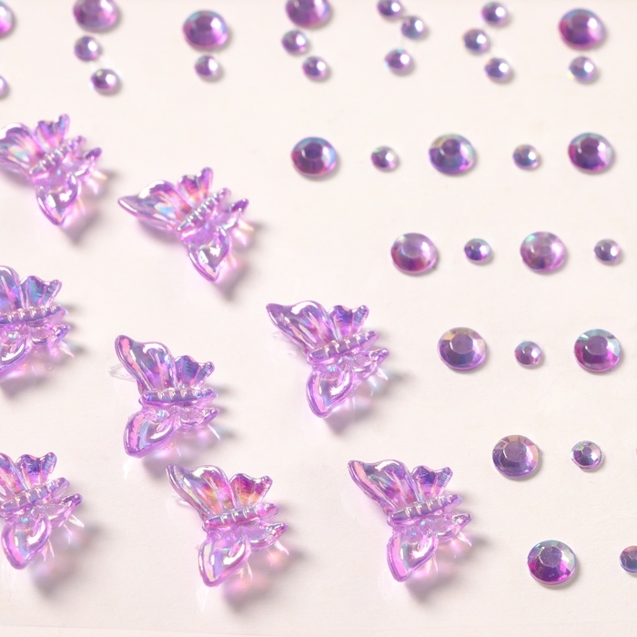 Наклейка пластик стразы "Полёт бабочки" фиолетовая 11х7,8 см