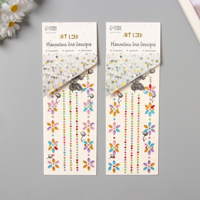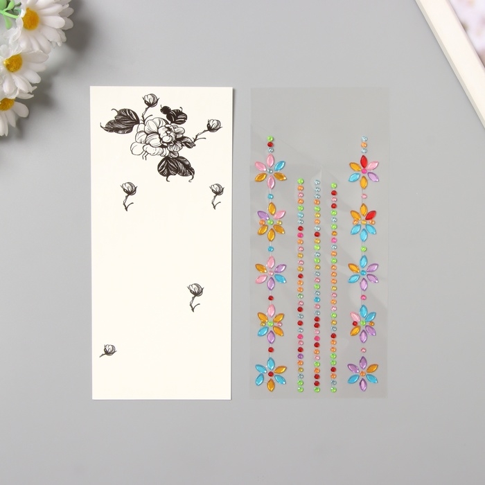 Наклейка пластик стразы тату на тело "Цветочная аппликация" цветная набор 2 листа 18х8 см