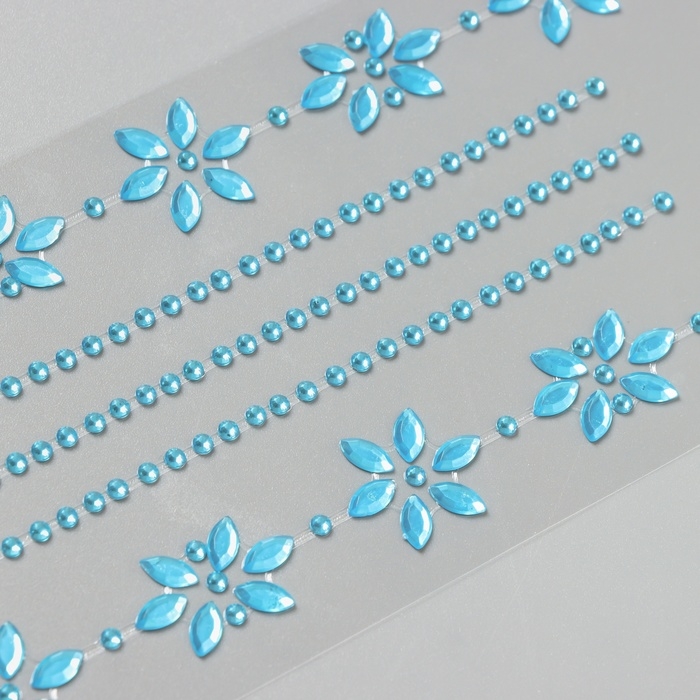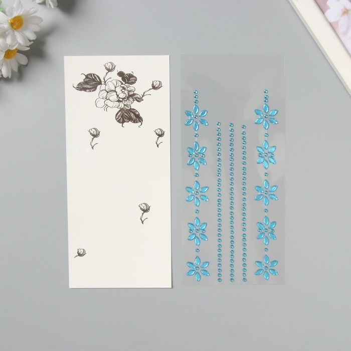 Наклейка пластик стразы тату на тело "Цветочная аппликация" голубая набор 2 листа 18х8 см