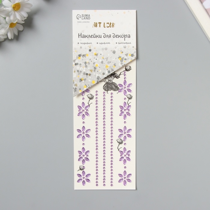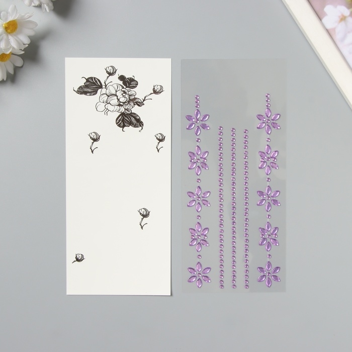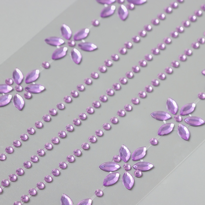Наклейка пластик стразы тату на тело "Цветочная аппликация" фиолетовая набор 2 листа 18х8 см 10536