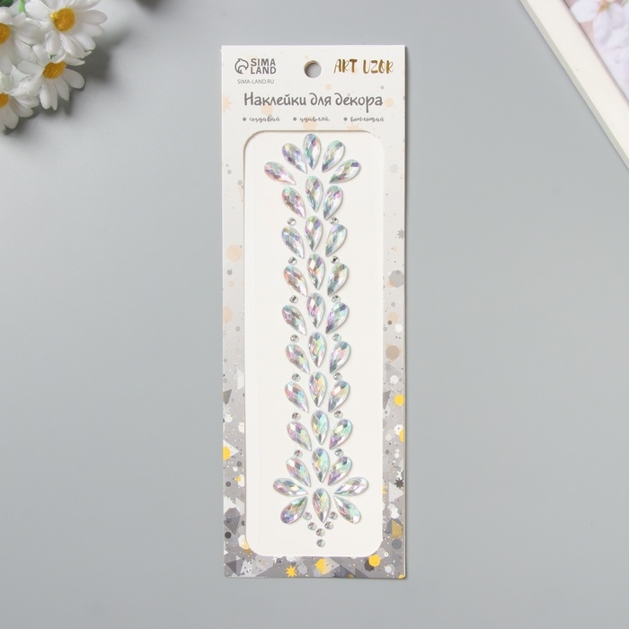 Наклейка пластик стразы "Фонтан" серебро 25х8,5 см