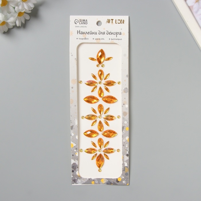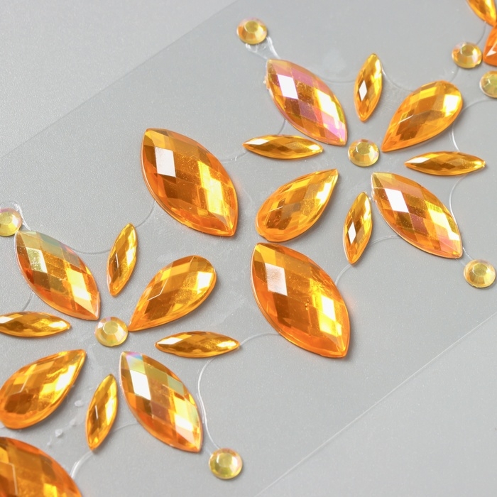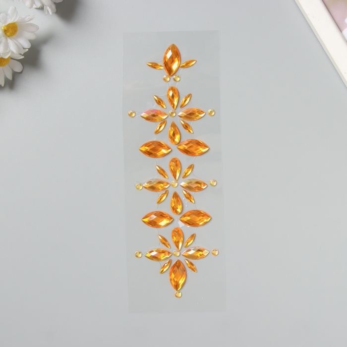 Наклейка пластик стразы "Цветы" жёлтая 25х8,5 см