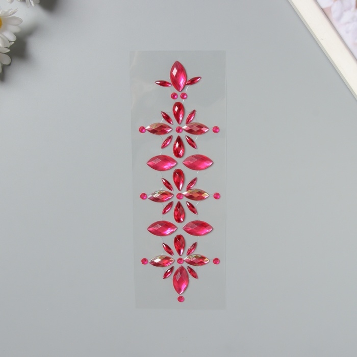 Наклейка пластик стразы "Цветы" малиновая 25х8,5 см