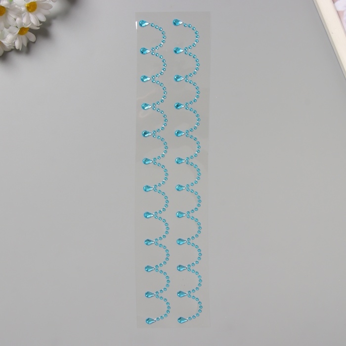 Наклейка пластик стразы "Подвесы" синяя 35х8 см