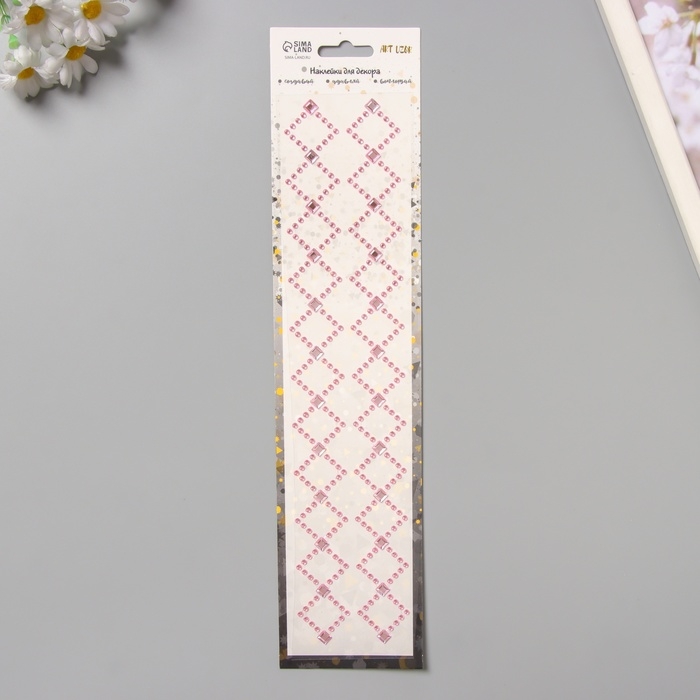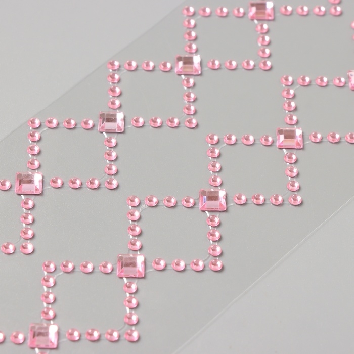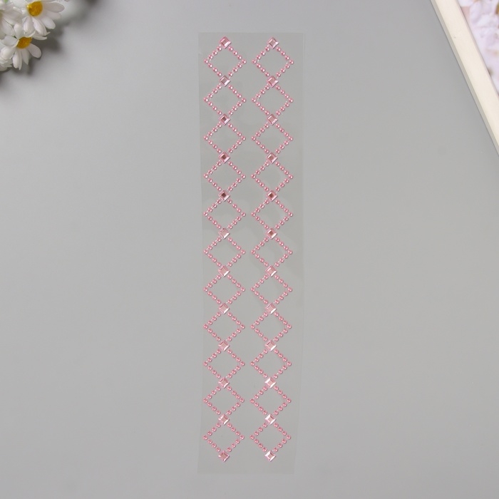 Наклейка пластик стразы "Узор из ромба" розовая 35х8 см