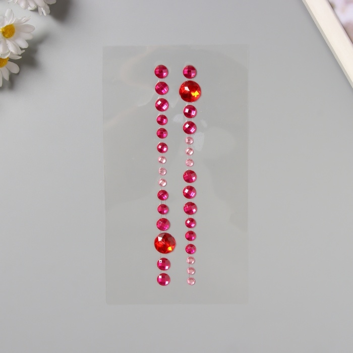 Наклейка пластик стразы на волосы "Круги" малиновая 25х13 см