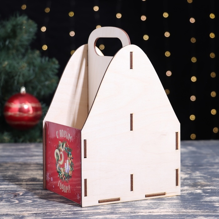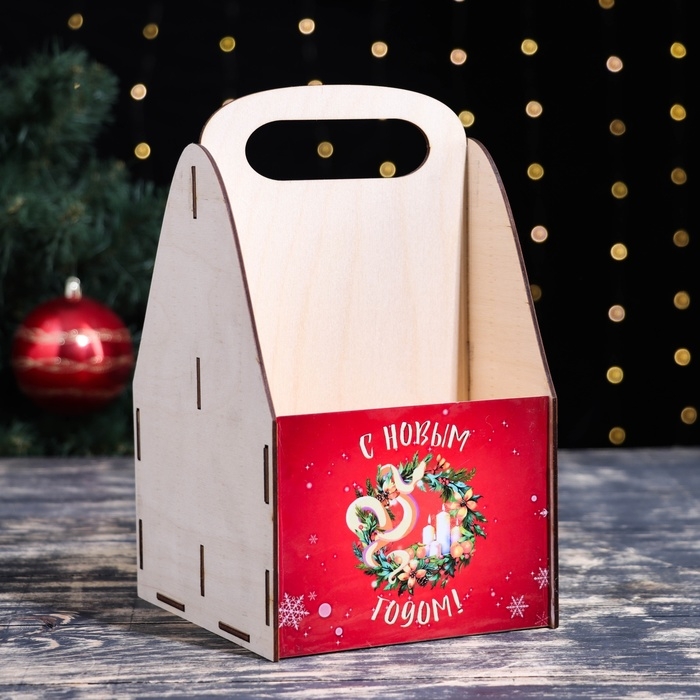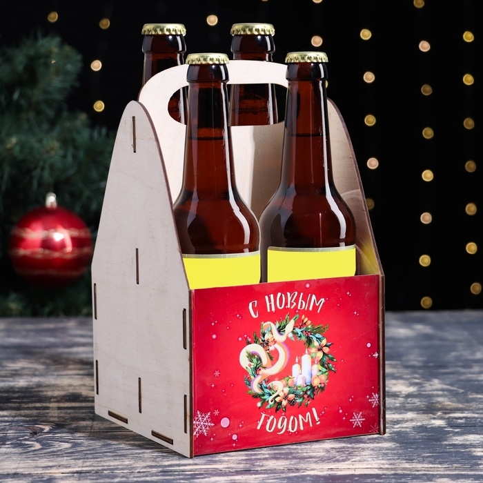 Ящик для пива "С Новым Годом!" символ года, венок, 15 х 15 х 25 см
