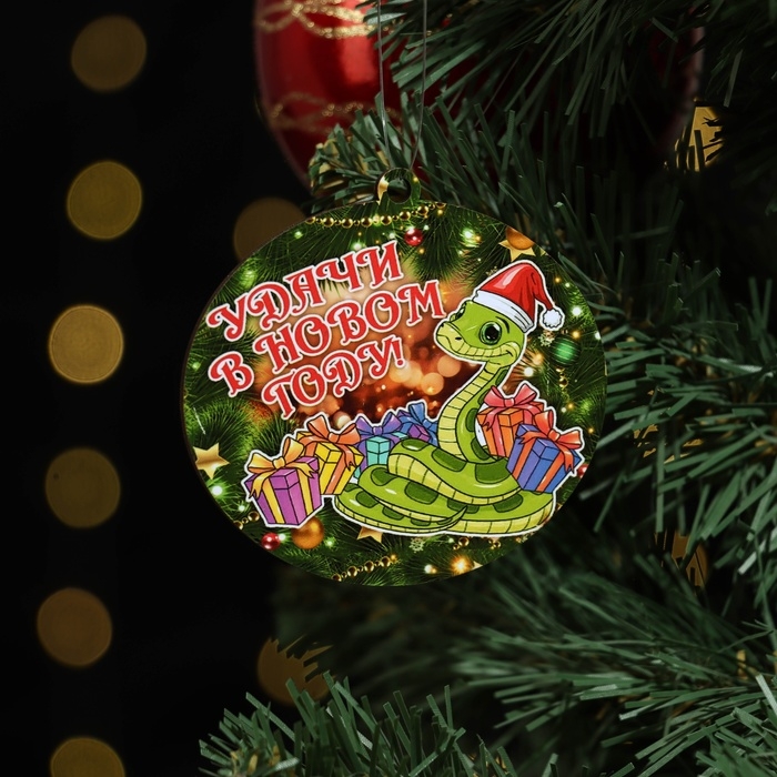 Ёлочная игрушка новогодняя "Удачи в Новом Году!" змея, зелёный фон, 8 х 9 см