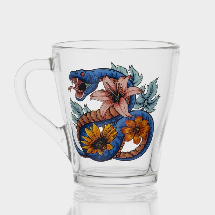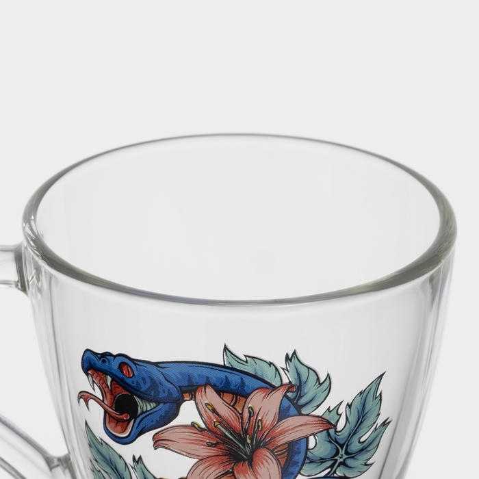Кружка стеклянная кофейная «Цветы и змеи», 250 мл