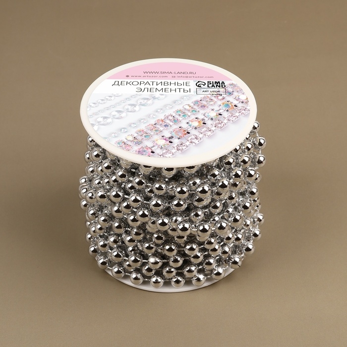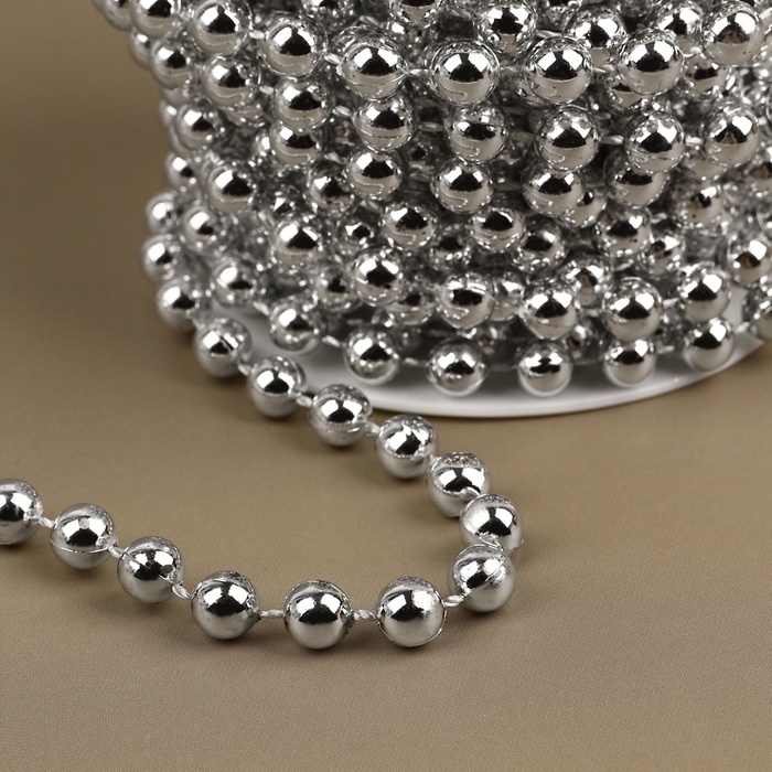 Бусы на нитях, круглые, 7,5 мм, 10 ± 1 м, цвет серебряный