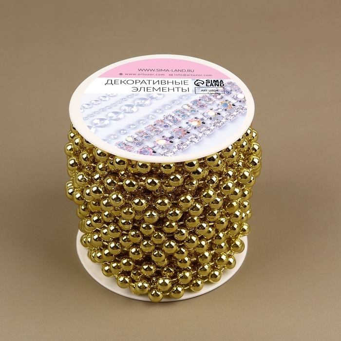 Бусы на нитях, круглые, 7,5 мм, 10 ± 1 м, цвет золотой