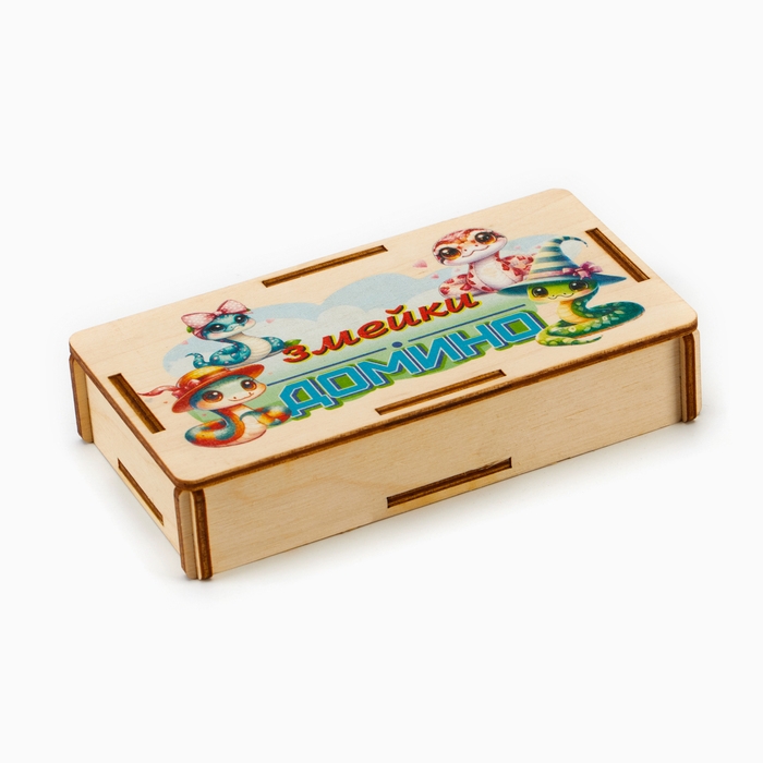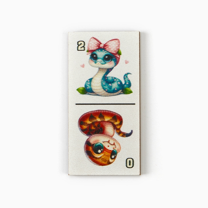 Домино деревянное детское "Цветные змейки", настольная игра, костяшка 6 х 3 см