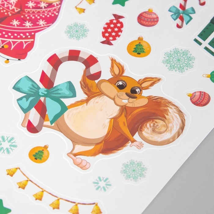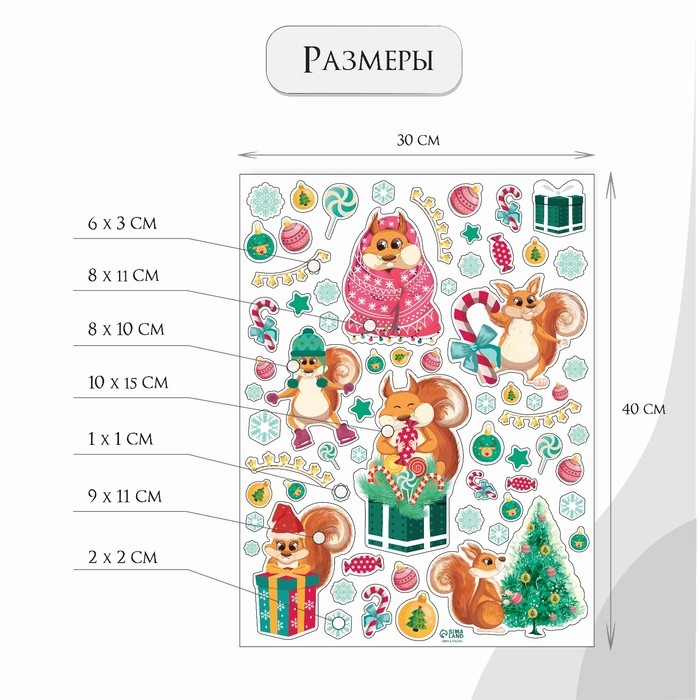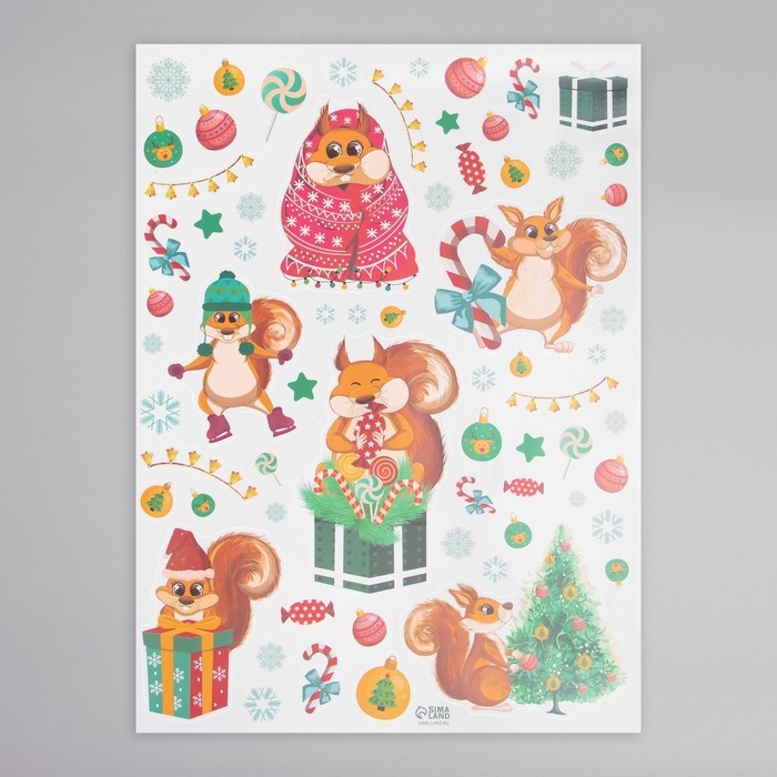 Наклейка интерьерная цветная "Белки с подарками" 30х40 см