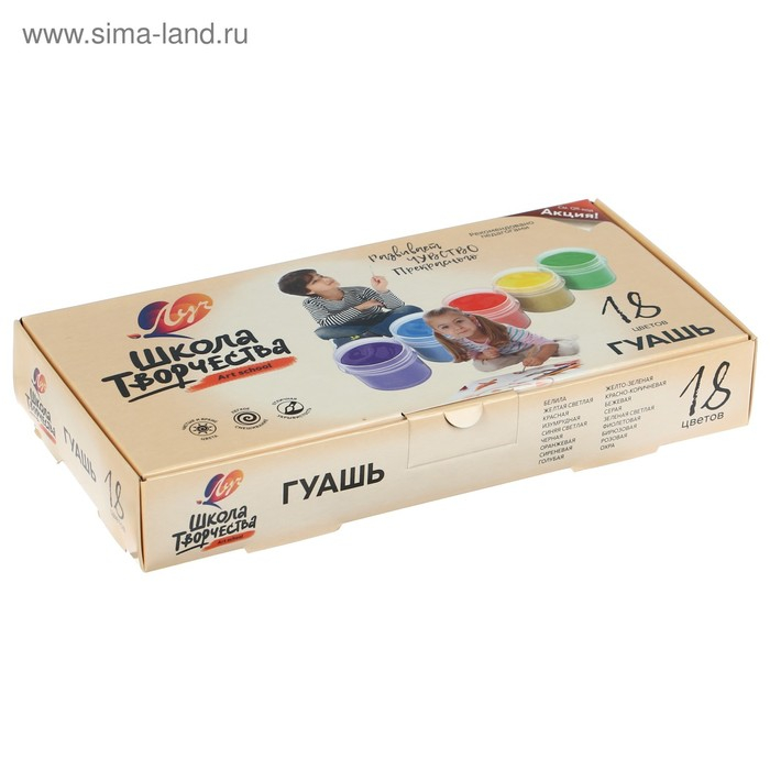 Гуашь 18 цветов х 20 мл "Школа творчества"