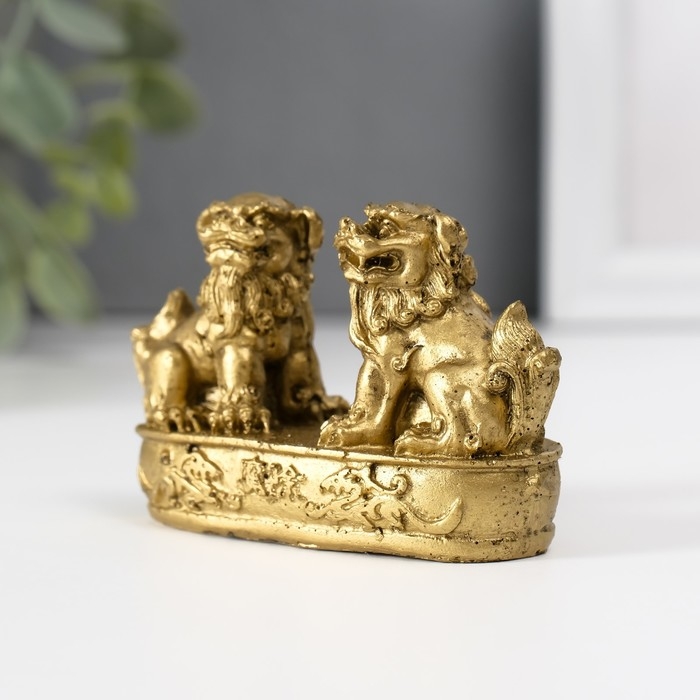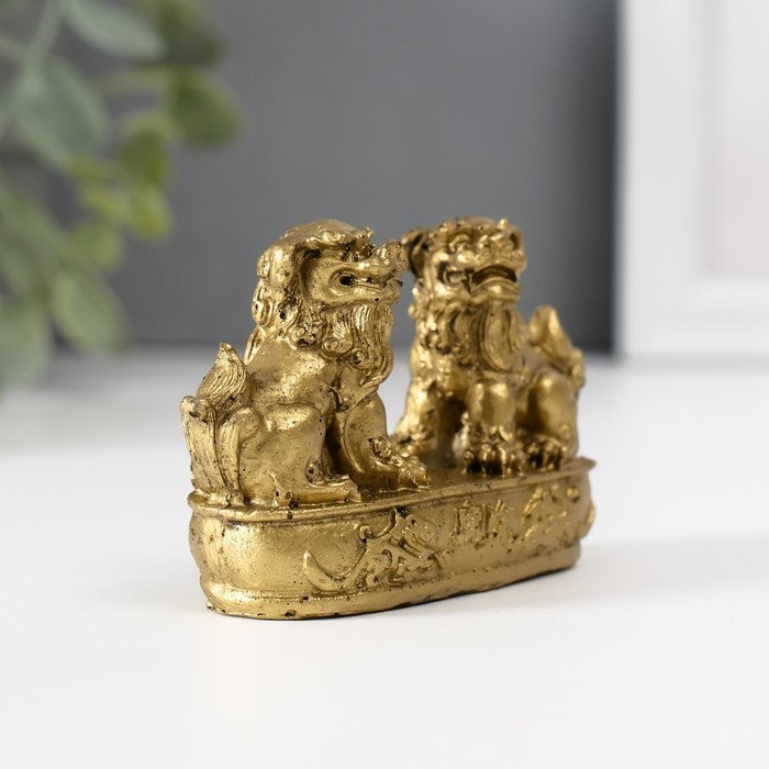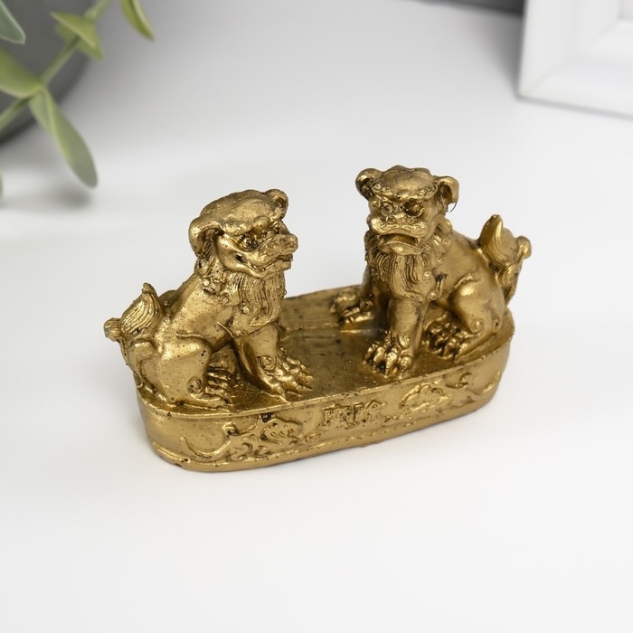 Нэцкэ полистоун "Небесные львы (собаки Фу)" бронза 2,8х8,2х5 см