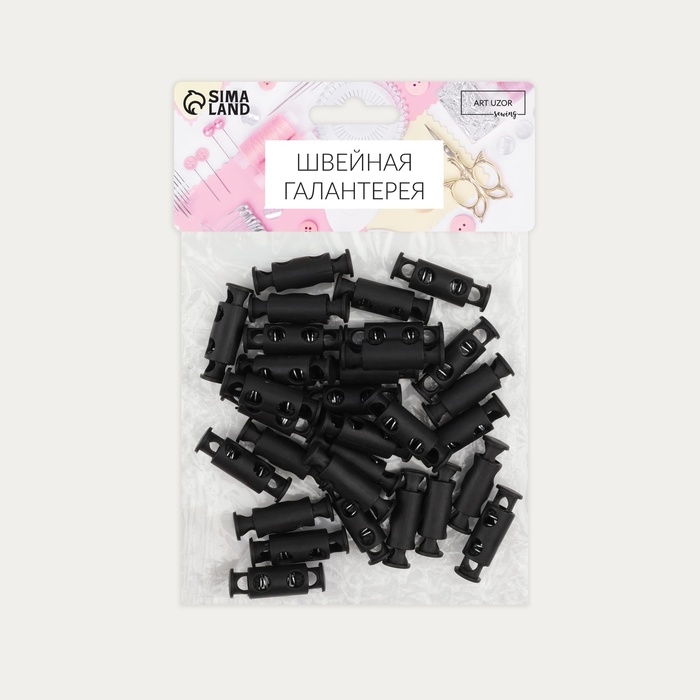 Фиксатор для шнура, двойной, d = 5 мм, 11 × 33 мм, 30 шт, цвет чёрный