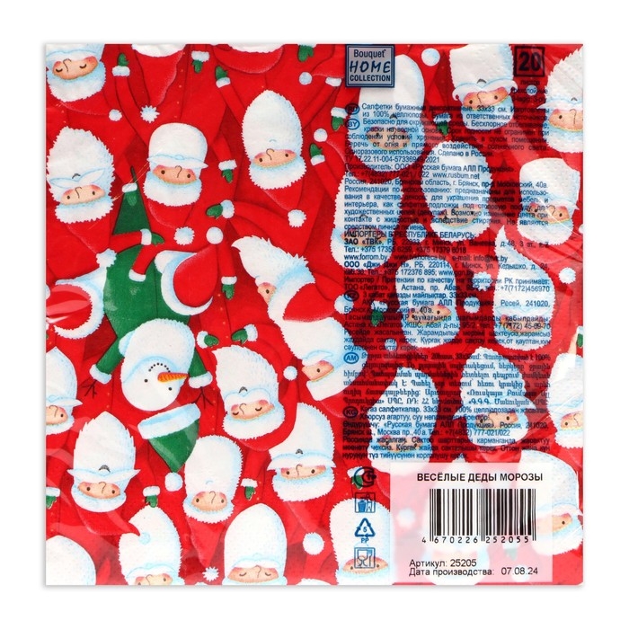 Новогодние салфетки бумажные Home Collection «Веселые деды морозы», 3 слоя, 33х33 см, 20 шт