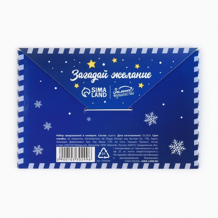 Набор предсказаний на Новый Год в конверте «Новогодняя коллекция: От волшебной змейки», 8 х 12 см
