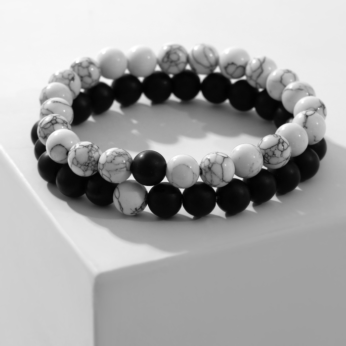 Набор браслетов 2шт шар №8 «Агат», цвет чёрно-белый