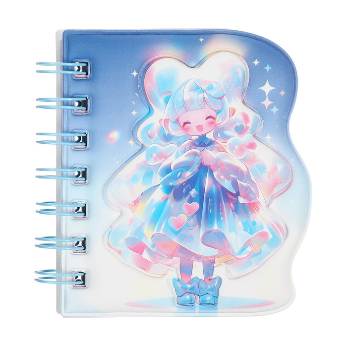 Записная книжка подарочная на гребне 80л,линия, цветной блок,облож.ПВХ 3D Аниме(10,2х10,5см) 10539