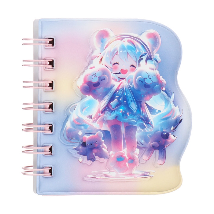 Записная книжка подарочная на гребне 80л,линия, цветной блок,облож.ПВХ 3D Аниме(10,2х10,5см) 10539